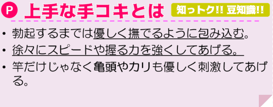 唾液やローションで柔らかくなった手を使うことで、男性に今までなかったような気持ちよさを与えることができます。