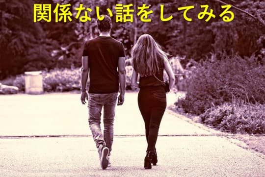 喧嘩中にいきなり違う話やくだらない話をすると、不意を突かれて「ふふっ」と吹き出してしまい、いつの間にかラブラブな雰囲気に、、、。というパターンが多々あります。これは緊張感の中予想外の事を言われて心が隙だらけになる為です。