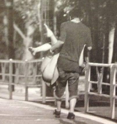 お尻丸出しだし、背中じゃなくて首?を支えられてるかのような…笑。