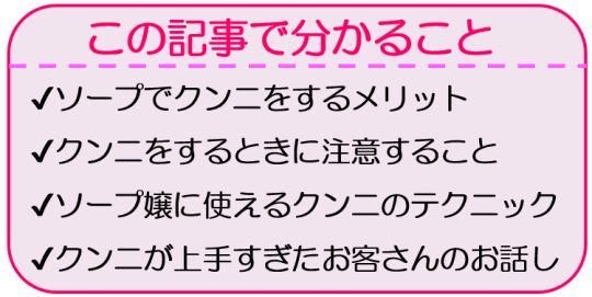 ソープ嬢相手にクンニってしてますかー?ソープ嬢に限らず風俗嬢全般に対してクンニをすることに抵抗を感じる男性は多いです!ですが、クンニって女性からしたら好きな相手以外で唯一イケる可能性のある前戯の内の一つでもあります!今回はクンニについて知識を深めください。