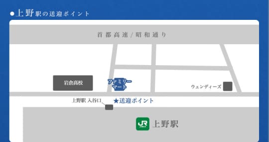 リュクスでは、「上野駅入りや口」「入谷駅1-a出口」より無料送迎があります!