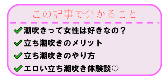 潮吹きをやってみたいなら立ち潮吹きがおすすめ!女性に優しく気持ちいいやり方を伝授!