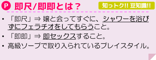 中には、部屋に入る前に廊下でフェラ(即尺)をしてくれるソープもあります。