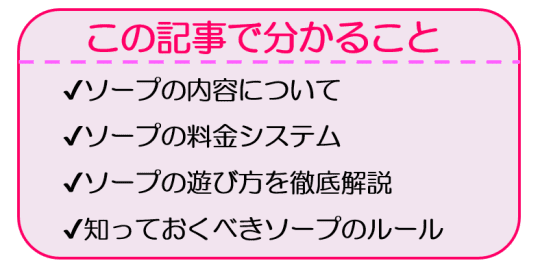 ソープってどんなところ?何ができるの?誰もが一度は考えたことがあるでしょう。今回は、ソープに行ったことがない人向けに、今更聞けないソープのサービス内容や料金システムを解説します。入店から本番までの簡単な流れや、ソープでのNG行為についても紹介します。
