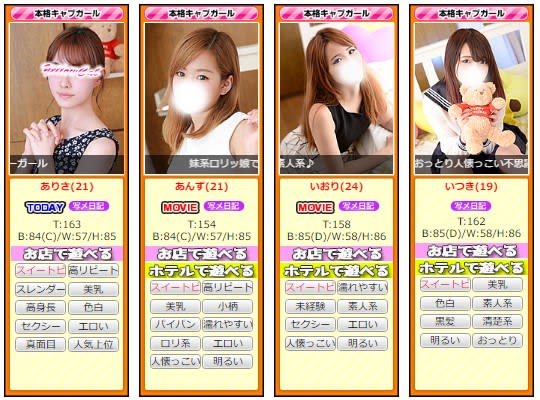 イエローキャブには18歳~20代前半の女の子が在籍しています。比較的落ち着いた素人系の女の子が多いので、清楚な女の子好きの男性にオススメです!巨乳系やミニマム系などスタイルもさまざまなので、好みで選んでくださいね☆