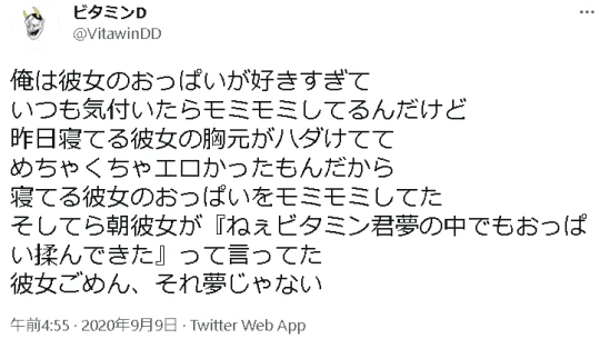私の彼氏は寝てるときによくおっぱいを揉んでくるなぁ。(笑)