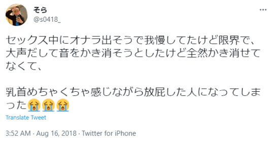 こんにちは!私は、いつも大事な瞬間や人が周りにいて出せない時になると急に…オナラがしたくなるんです。セックスの時も…。