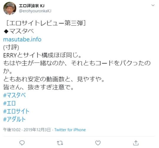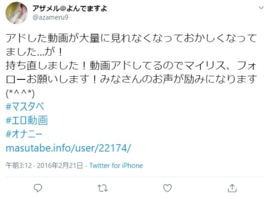 「エロ動画 マスタベ」に対するユーザーの信頼度も高いのがユーザーのtweetからも分かります。