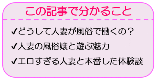 夫に内緒で働く女性、または夫公認で風俗嬢をしている強者の人妻も!