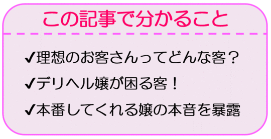 デリヘルで女の子たちに好かれるor嫌がられる客の特徴は?本番してくれる子ってホントに存在する?俺たちがイイと思ってしていること&やりたいからしていること。本音はどう思ってるの!?デリヘルで働く女の子の本音を教えちゃいます!