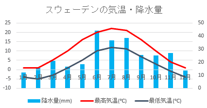 スウェーデンの気候は、他のヨーロッパ諸国と比べても比較的に暖かいですが、冬は雪が多く降り、とても寒いです。また、スウェーデンのベストシーズンは夏です。理由は先ほどもご説明したとおり、夏は午前の2時でも太陽があり、日本のように蒸し暑くないので快適に過ごせます。