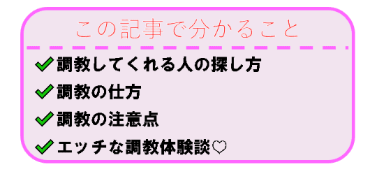 調教したい人、されたい人。どうやって相手をみつけたらいいのかご教授いたします。そして私(M女)がどんな調教をうけているのか全て告白。ご主人様との1日を書きました。ソフト~ハードな調教がありますが体意外にも精神的に支配される感じがたまりません!