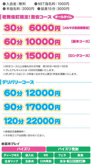 『歌舞伎町激安コース』だと、40分6,000円と破格の金額で利用することも出来るのです!