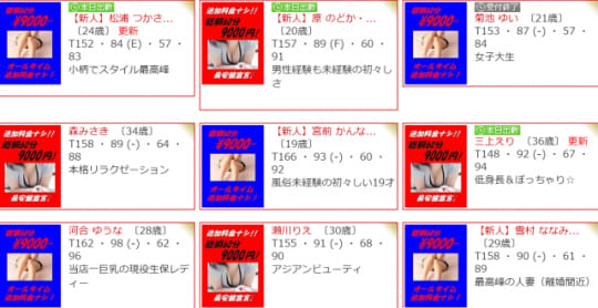 実際に快眠CLUBの女の子一覧を覗いてみてください。