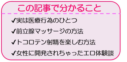 前立腺マッサージを繰り返すうちに快感を覚えるようになれば、“トコロテン射精”もスグそこ!