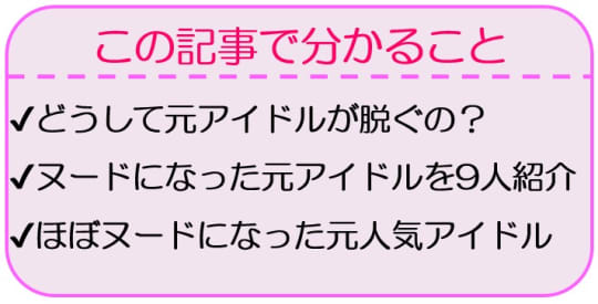 それでは早速、ヌードを披露する理由と、元アイドル達を見ていきましょう!