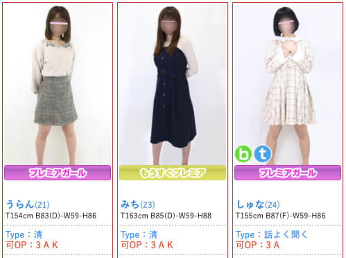 年齢も幅広く、18歳から29歳の女の子が揃っていますよ。
