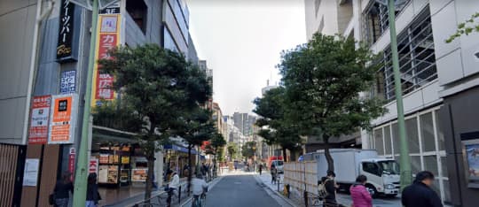 最寄りは京急川崎駅です。カラオケ歌広場が見える方向にまっすぐ進みます。