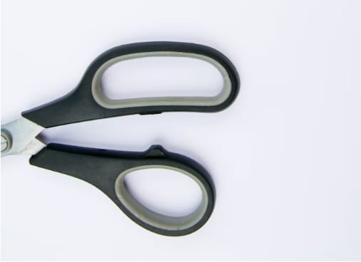 商品によって違いますが、たいていちょっと強めに接着されているので、ハサミをつかって分解していきましょう。