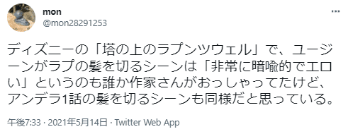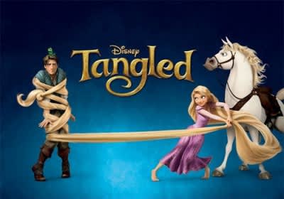 これは塔の上のラプンツェルの広告に使われたものですが、ラプンツェルの長い髪の毛でフリン・ライダーが縛られてしまっています。