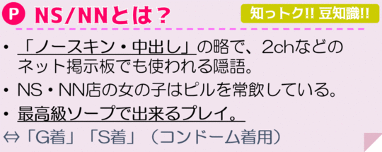 高級ソープや裏風俗などでよく見かける「NN」。なにかの暗号ぽいですが、シンプルに生中出しという意味です。生(N)中出し(N)でNNです。