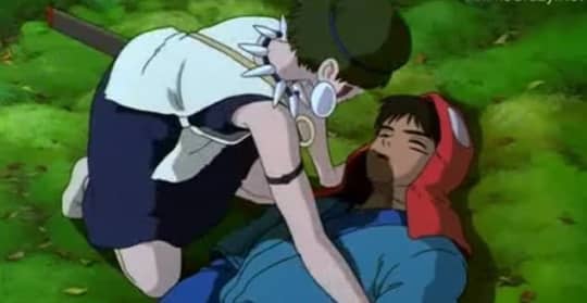 もののけ姫にて、サンがアシタカに口移しで乾いた肉を食べさせるシーン。この描写にリアルタイムでドキマギした方は非常~に多いのではないでしょうか。私もその1人です。まだ子供だったので、まともなキスシーンすら緊張しちゃうのに…!