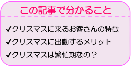 よくクリスマスは暇なイメージを持たれがちですが、世間がイベントで盛り上がっている中で、風俗業界がクリスマスだけ特別に弾かれるといったことはありません。
