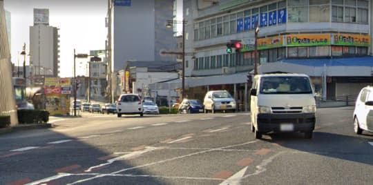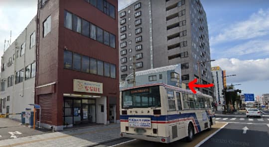 バスが通行しているためちょっとわかりづらいですが、左側に「ななぼし」というデイサービスのある信号を左へ曲がって2件目です。