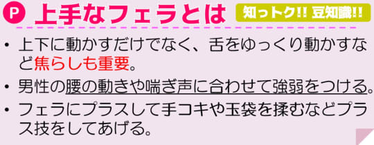 フェラだけでなく、その後の挿入時の気持ち良さも倍増するので、普段のセックスにマンネリを感じてしまっている方には大変オススメです!