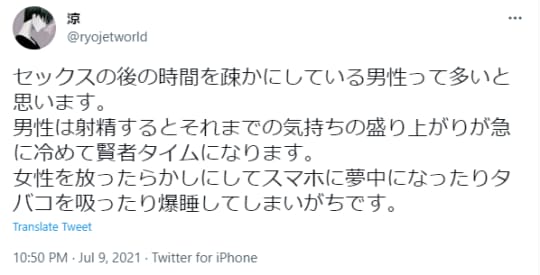 「セックスした後にさっさとタバコに火つけられると萎える」
