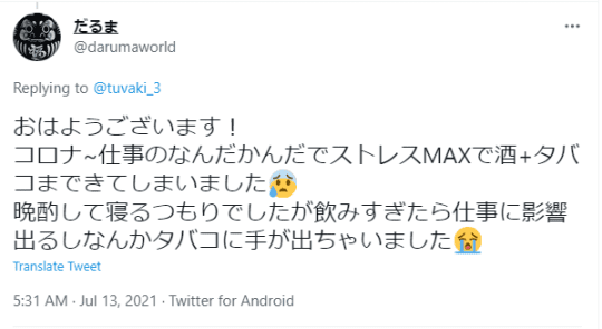禁煙を始めて1週間は、禁断症状が出てイライラしたり、タバコ吸いたい気持ちで頭がいっぱいになって夜も眠れない日が続いたそう。