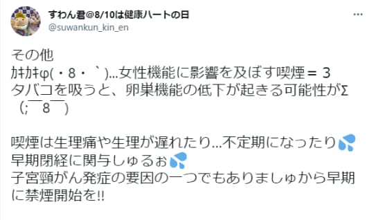 タバコは確実に妊娠・出産・教育に大きく関わってきます。