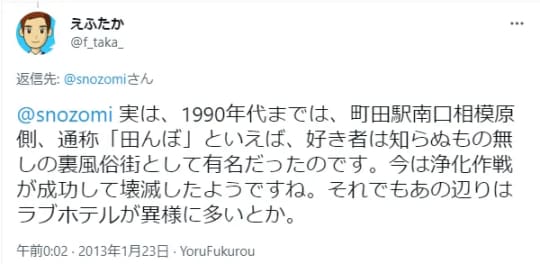 なんか町田もプロともセミプロとも言えない様な、行き所の無い人が増えている気がします。ラブホとかレンタルボックスのある駅ってこうなりやすいのかなー