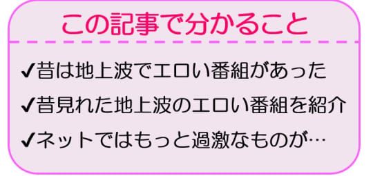 それではここから早速地上波で放送されていたエロいテレビ番組をご紹介していきます。