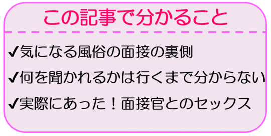 今回はそんな風俗での面接にまつわるエロい話のほか、面接以外でどんな関係を持っているのか、について暴露します!