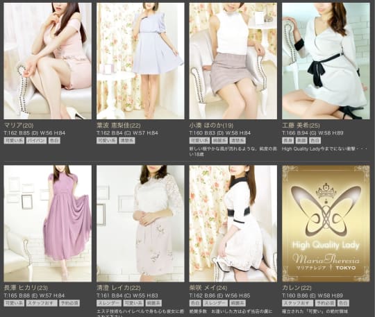 マリアテレジア東京の女の子はタレントのように可愛い女の子や、モデルさんのようにスタイルが良く綺麗なルックスの女の子、癒し系の笑顔で男性をメロメロにする女の子、エッチが大好きなど変態な女の子とたくさんのタイプの女の子がいます!