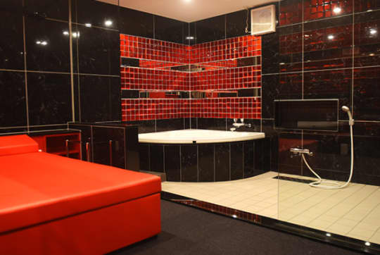 部屋の広さは広すぎず狭すぎずで、お洒落で快適な空間。室内の電気も調整できHしやすいムードをつくれるのがいいですね!