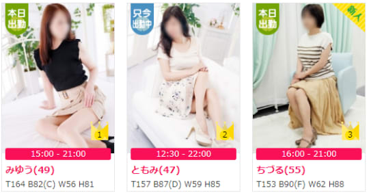 いい感じのエロい完熟嬢が多くていいね!リピ確定だな。(不動産・30才)