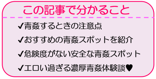 この記事では、青姦経験者の僕が考える注意点やおススメスポットをまとめました。