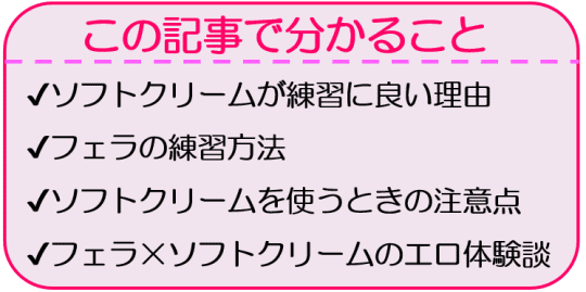 ソフトクリームを食べるのってフェラに似ていてエロいな。そう思ったことはありませんか?でもただエロいだけではなく、その形や大きさは、まさにフェラの練習にピッタリだったのです!フェラ未経験でも今日からできる、ソフトクリームを使ったフェラ練習方法とコツを紹介します。