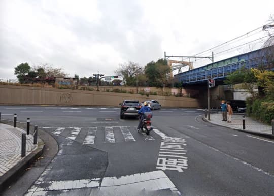大師道と交わるところまで来たら、右折し、線路をくぐります。