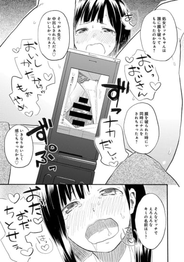 当然それだけで終わるはずもなく、「おっぱい見せて」「ビッチみたいにおねだりしてみて」などとだんだんと要求が過激になっていき、流れに乗せられた千歳ちゃんは処女膜を破られてしまいます。