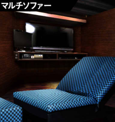 ルームタイプは画像の「フラットマット」の他に、「リクライニング」「カウチソファ」タイプがあり、短時間利用や宿泊など利用目的併せて選べるのが便利です。