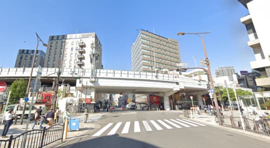 ここの高架のある信号交差点も真っすぐ進んでください。
