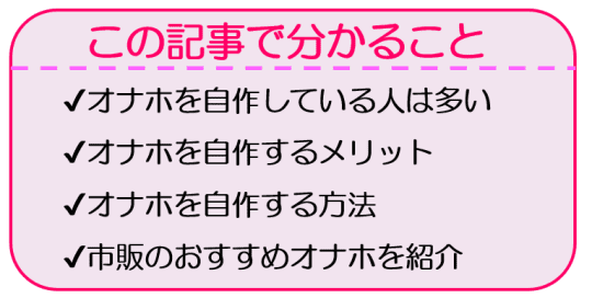 ネットなどで多くのオナホールが販売されていますが、高かったり・処分に困ってしまったりで中々買えない方もいますよね。だけどオナホールを使いたいという方!オナホールは自作て作ることができます!コスパも処理もたらくちん。ぜひ参考にして作ってみてください。
