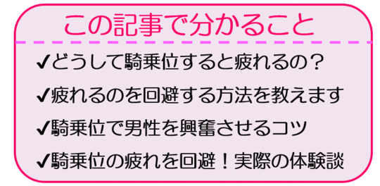 この記事を見てくださっているみなさんは、きっと騎乗位すると疲れて困っていると思います。