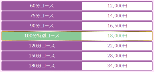 100分を特別コースとして、最短時間で60分で最長180分コースがあります。