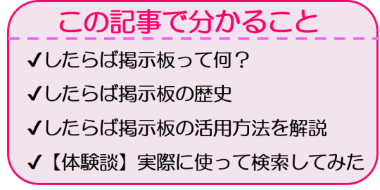 以上のように、したらば掲示板には、ほしい情報をすぐにゲットできる仕組みがしっかりあるんです。