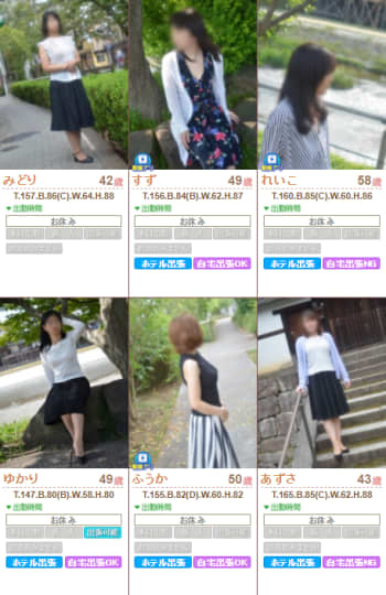 40代50代60代の熟女専門デリヘル「京都おかあさん」、41歳~60歳までが在籍していますが、その中心層は40代50代の女性となり、癒したっぷりのぽっちゃり系・スレンダー系・グラマラス系・美魔女系など、ビジュアル・スタイル共にバリエーション豊富で、それぞれの理想とするおかあさん像が存在します。