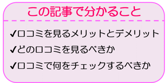 風俗にはいい口コミ、悪い口コミなどさまざまあり、そのどちらも参考になります。